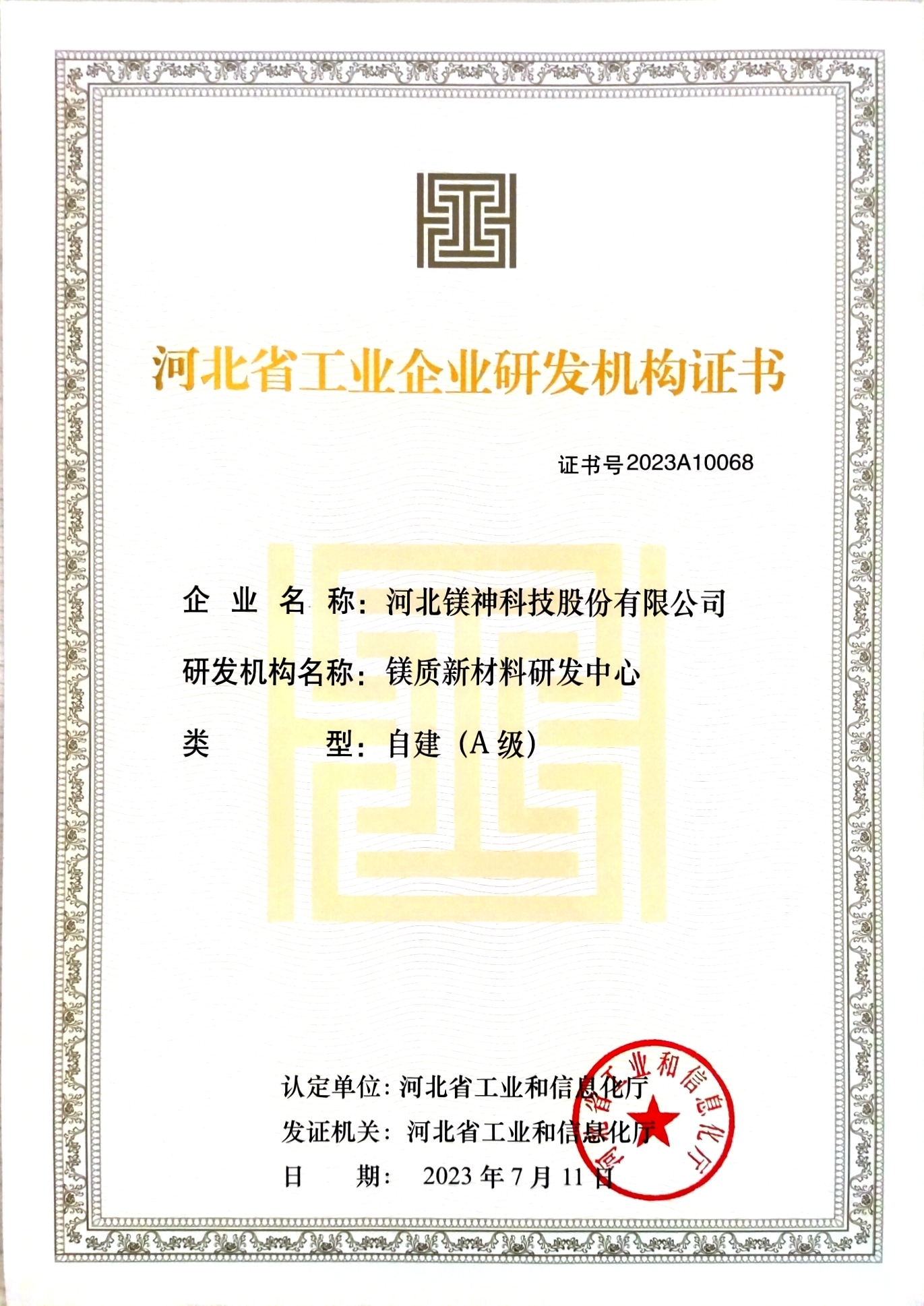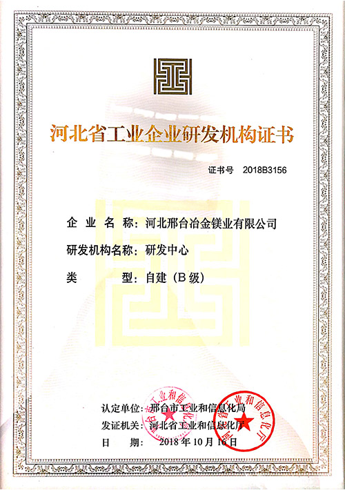 河北省工業(yè)企業(yè)研發(fā)機(jī)構(gòu)證書(shū)